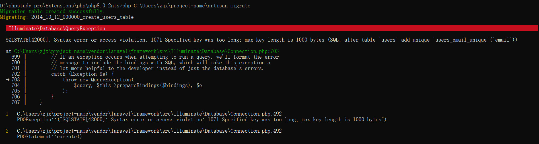 Schema::defaultStringLength(191); //Solved by increasing StringLength